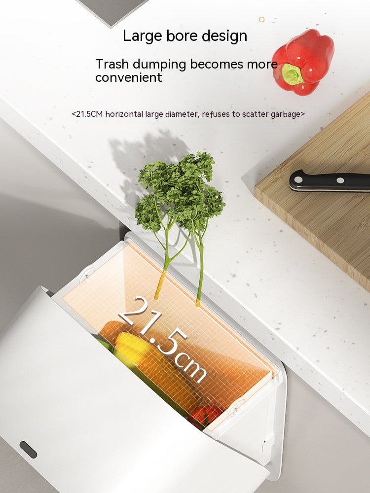 This wall-mounted smart trash can is designed to save floor space while keeping waste discreetly covered and easy to access.